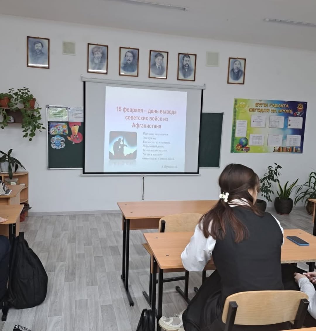 9 «Б» сыныбында Кеңес әскерлерінің Ауғанстаннан шығарылған күніне арналған сынып сағаты өтті.