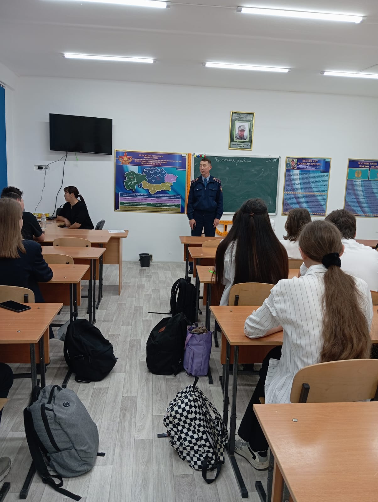 Сотрудники полиции разъяснили учащимся нормы административной и уголовной ответственности несовершеннолетних, рассказал о возможных последствиях правонарушений и подчеркнул важность соблюдения законов Республики Казахстан.