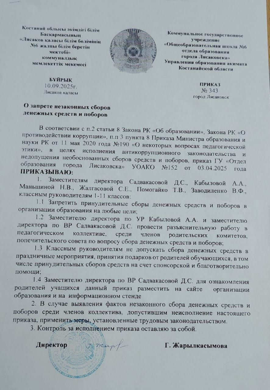 КГУ «Общеобразовательная школа №6» отдела образования города Лисаковска Управления образования акимата Костанайской области