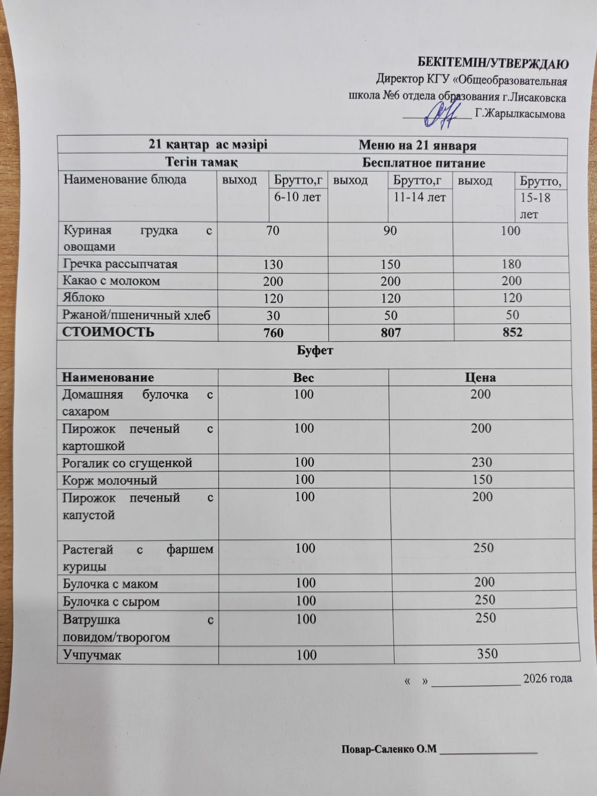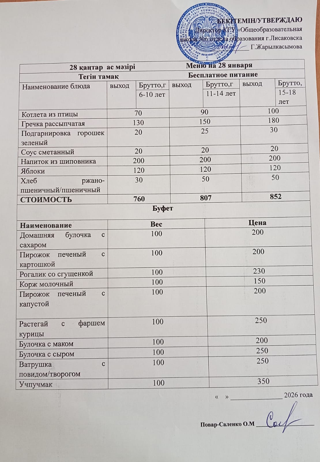 Меню на каждый день 2025-2026 учебный год