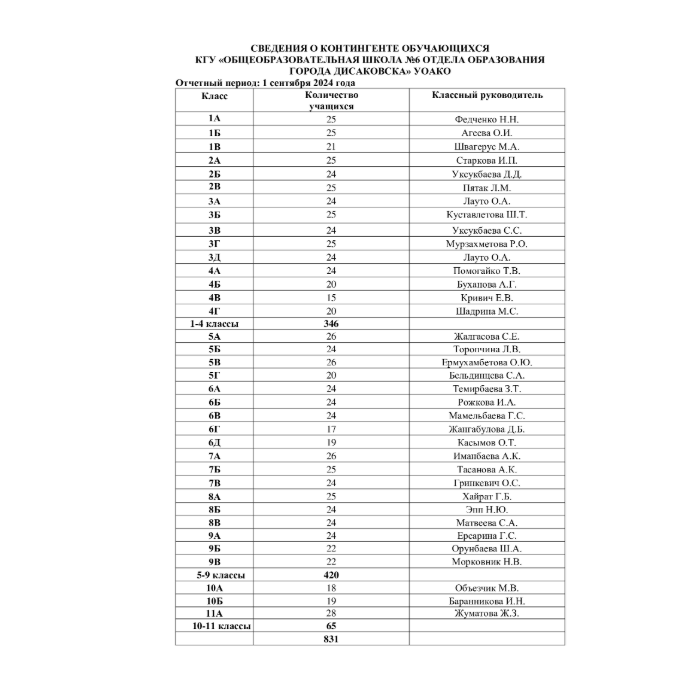 | № | Сведения о контингенте и мониторинг качества знаний 2025-2026 учебный год |